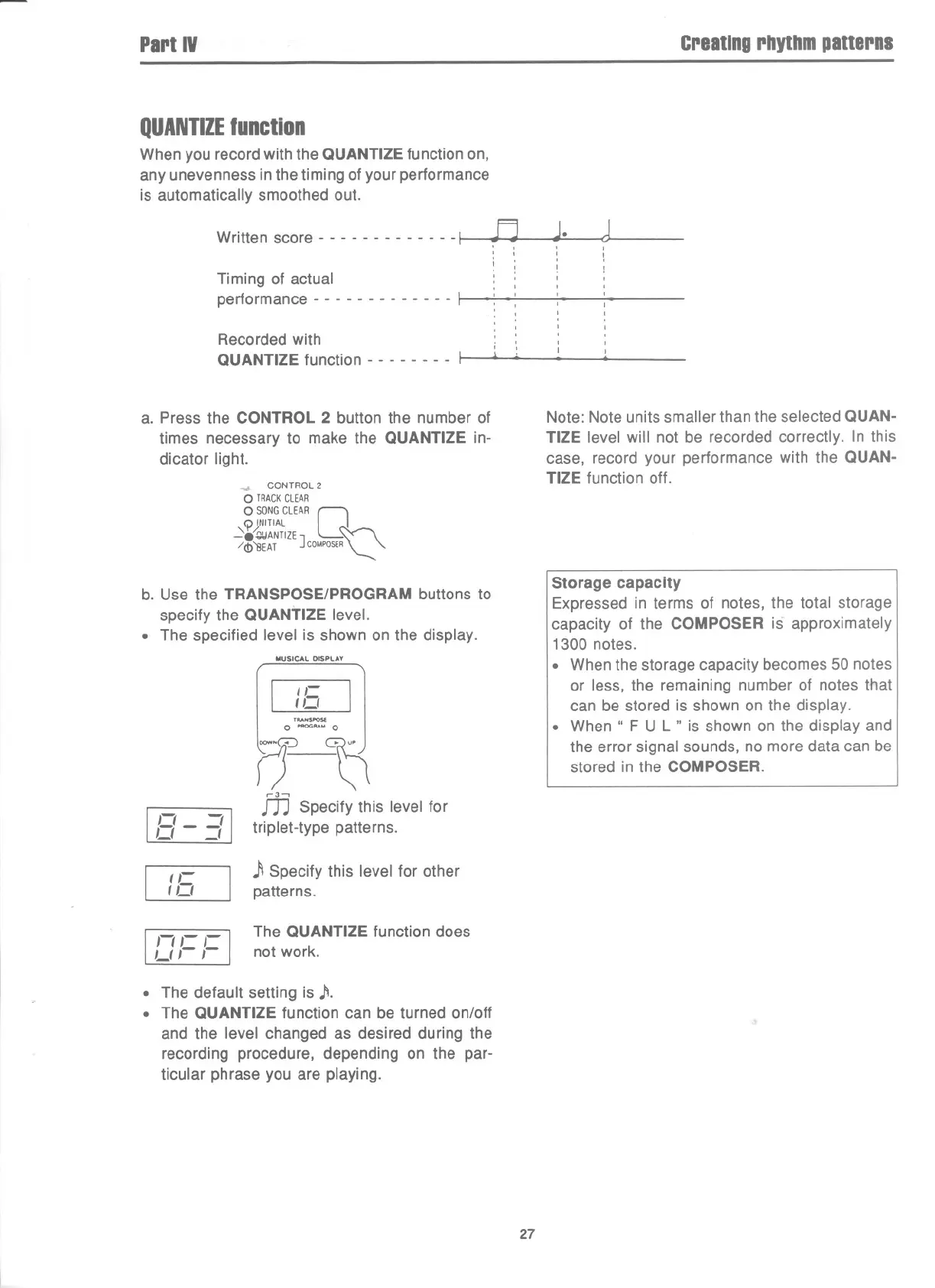 . The QUANTIZE function can be turned on/off