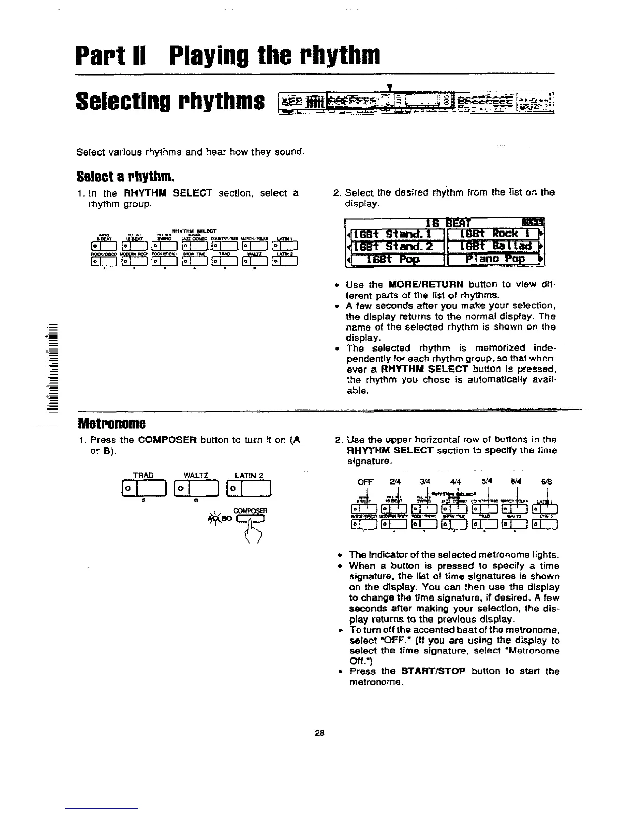 Technics SX-PR305 K - Rhythm Playback Control; Starting Rhythm Playback; Synchro Start Operation; Balance Control for Rhythm