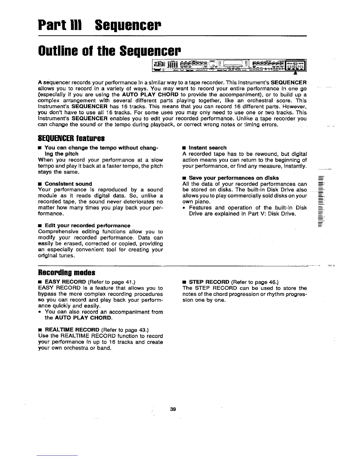 Technics SX-PR305 K - Sequencer Menu and Functions; Memory Capacity; Sequencer Menu Navigation; Easy Record Mode