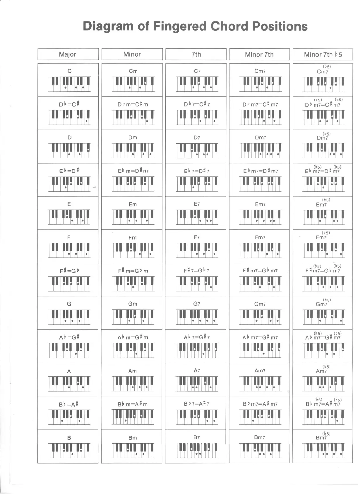 Diagram of Fingered Chord Positions