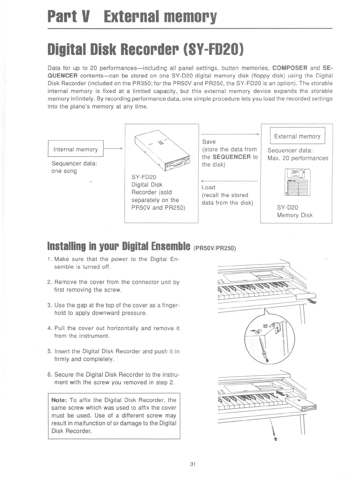 Disk Recorder (included on the PR350; for the PR50V and PR250, the SY-FD20 is an option). The storable