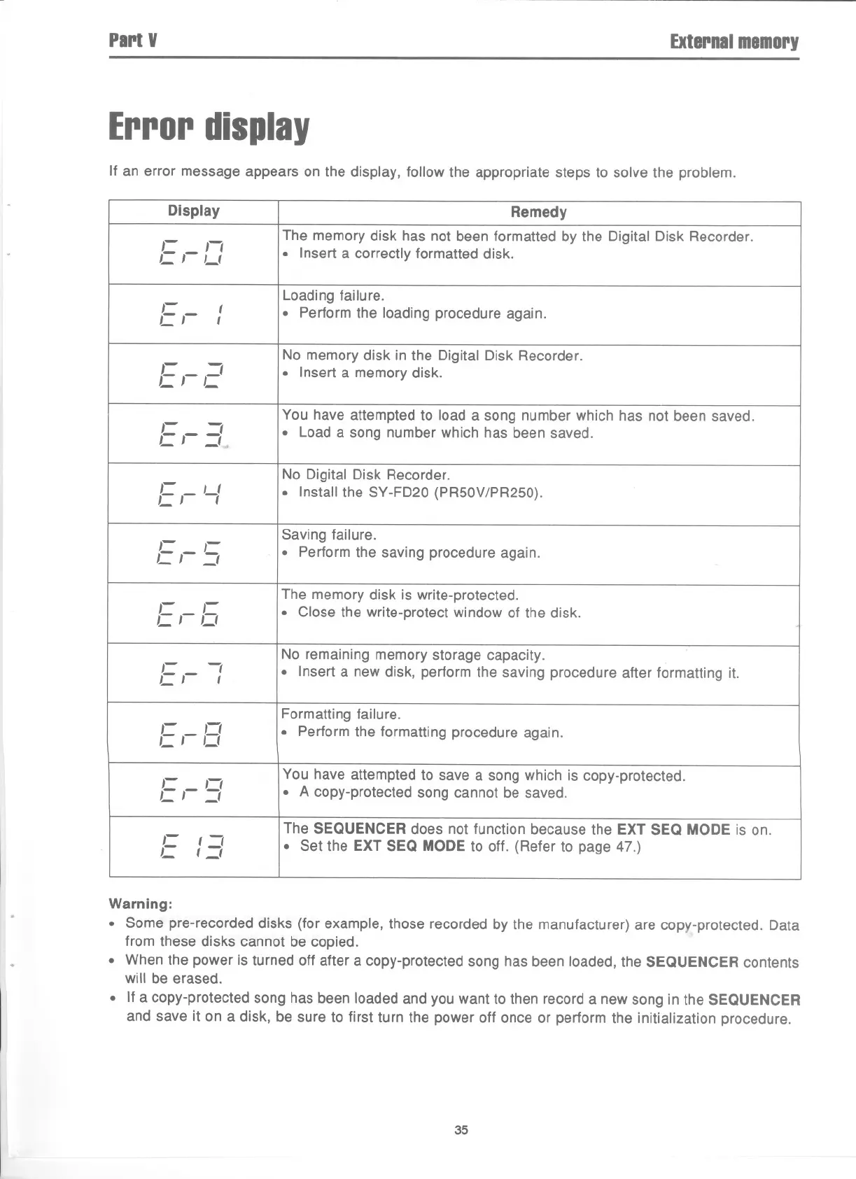 . When the power is turned off after a copy-protected song has been loaded, the SEQUENCER contents