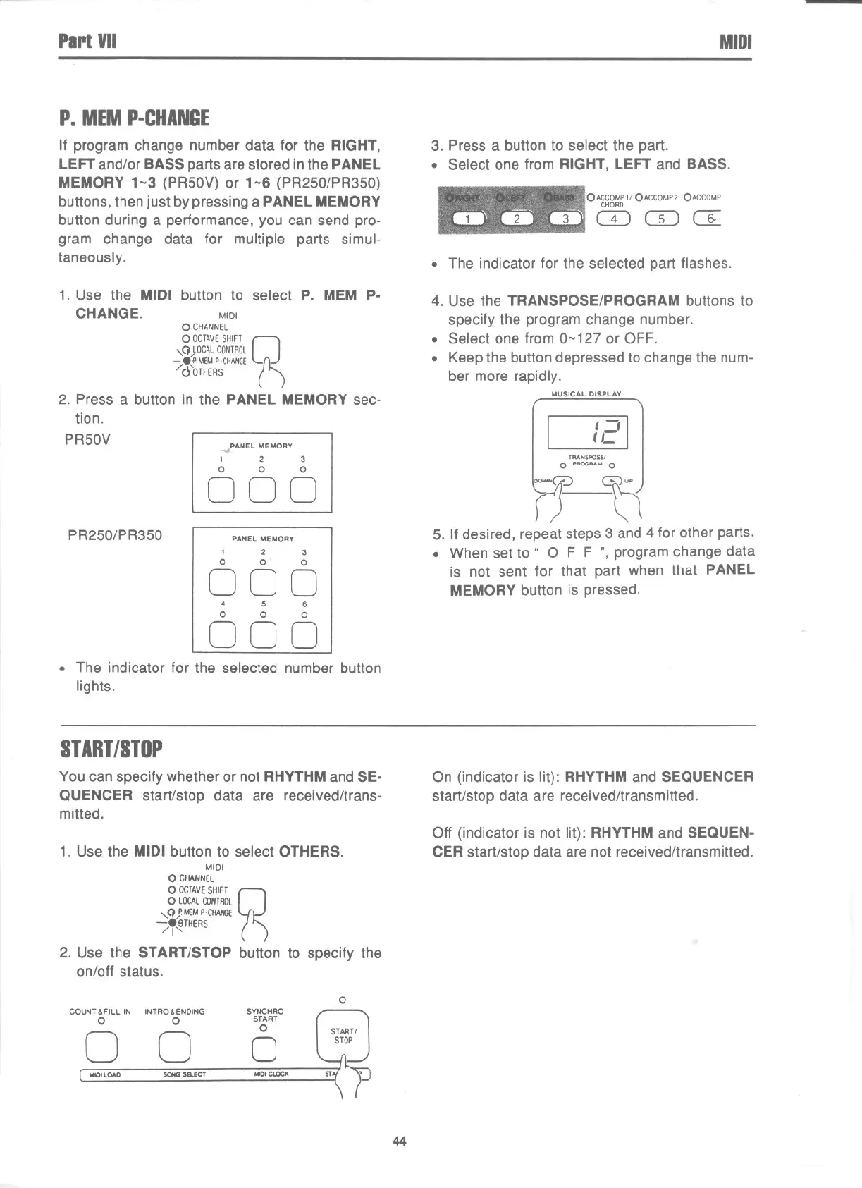 1. Use the MIDI button to select P. MEM P-