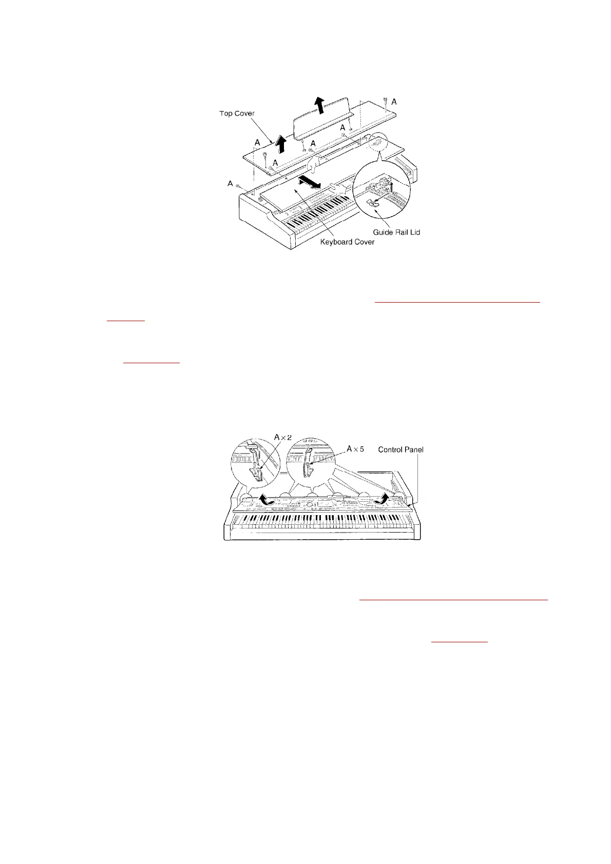 2. Remove the control panel mounting screws (A × 7 pcs.) as shown