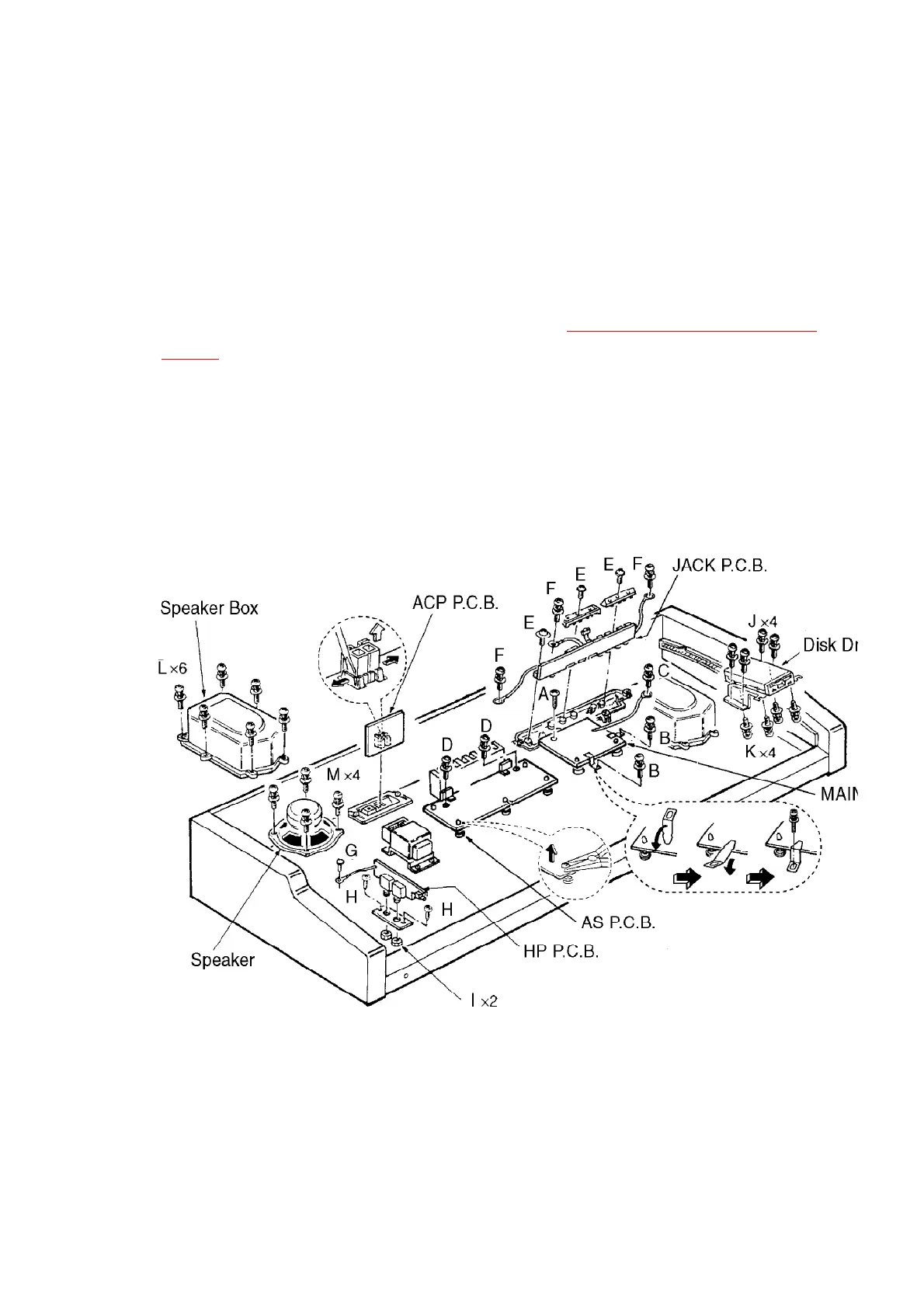 4. Remove the Disk Drive unit mounting screws (K x 4 pcs.).