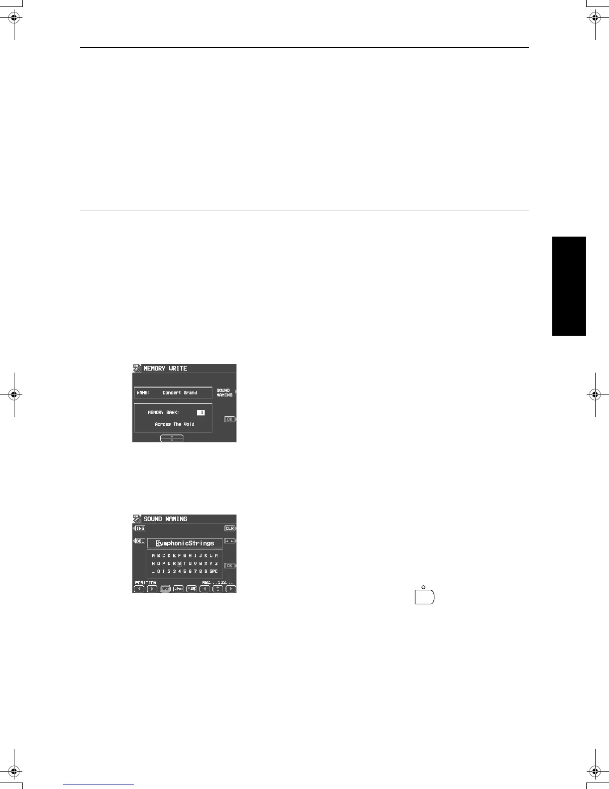 you create with the SOUND EDIT. You can store up to 40 original sounds then select the sounds just like