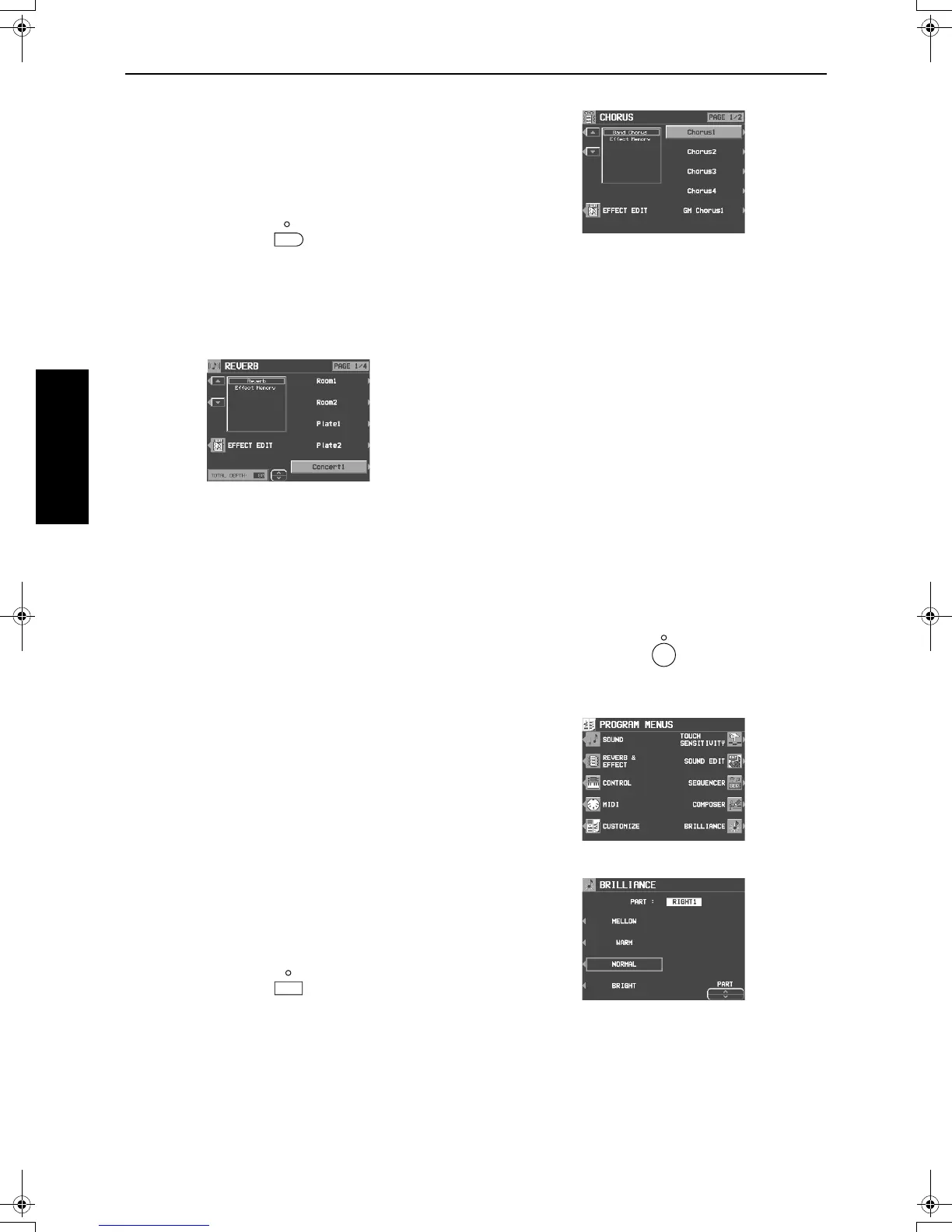 • This display can also be accessed from the REVERB &