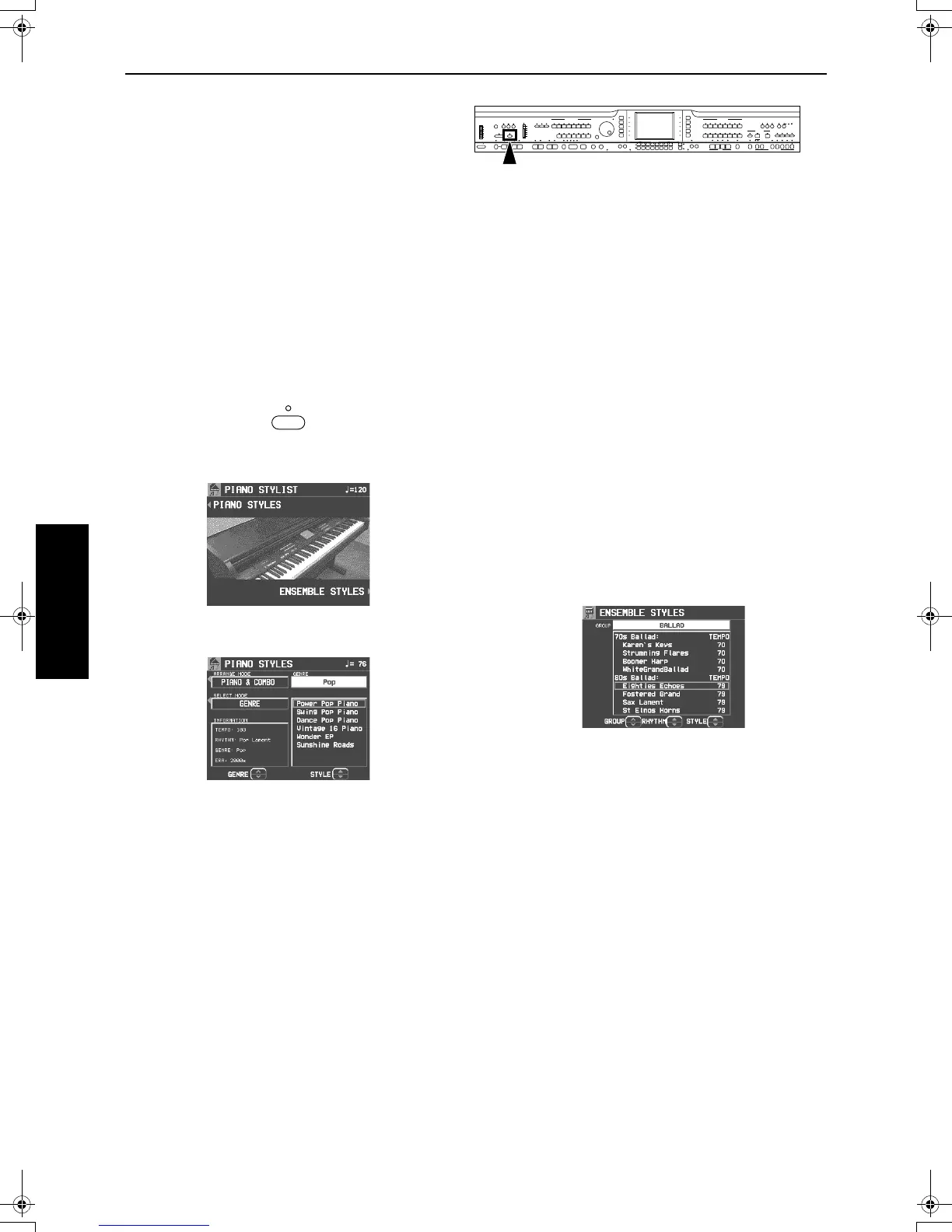 Press the PIANO STYLES button.
