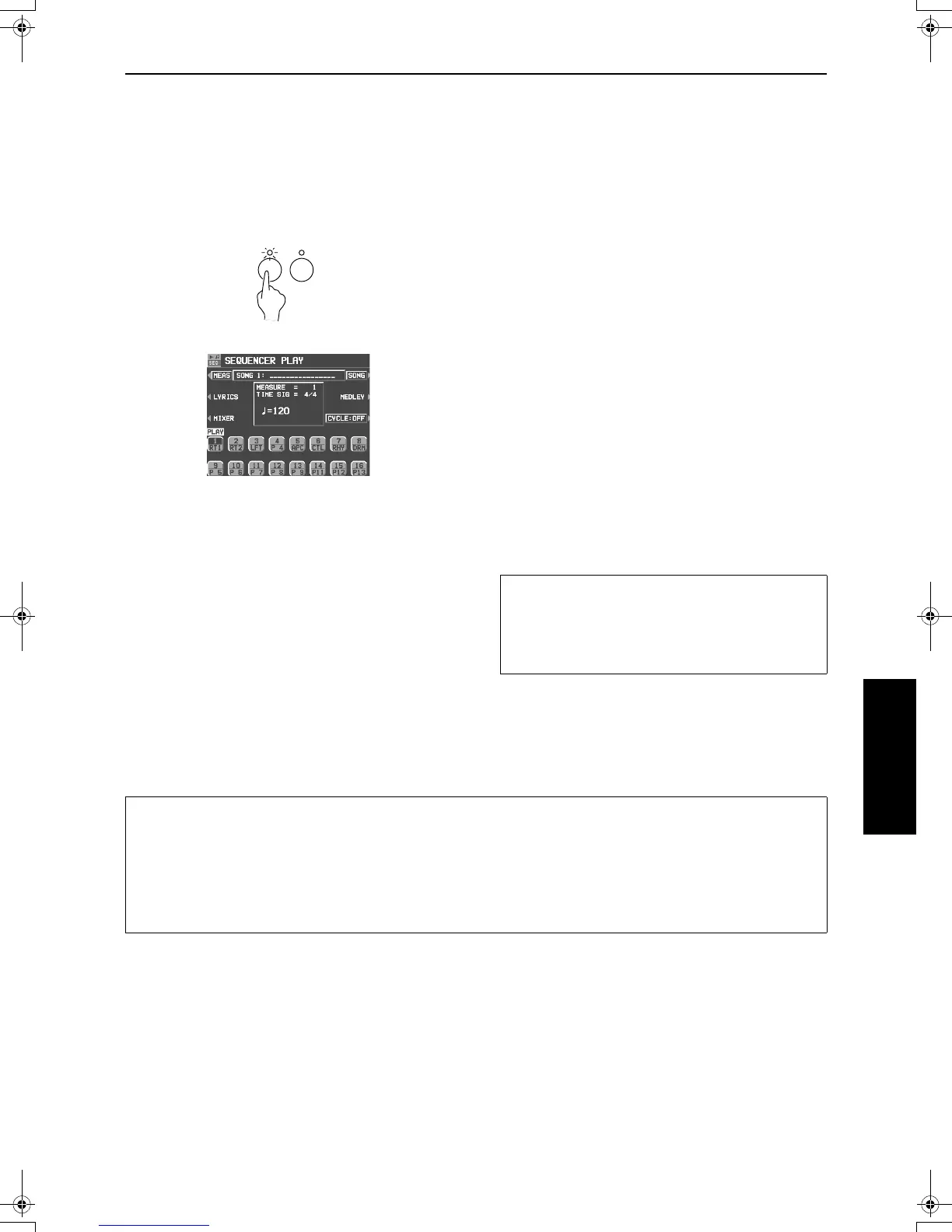• The SEQUENCER returns to the beginning of the song
