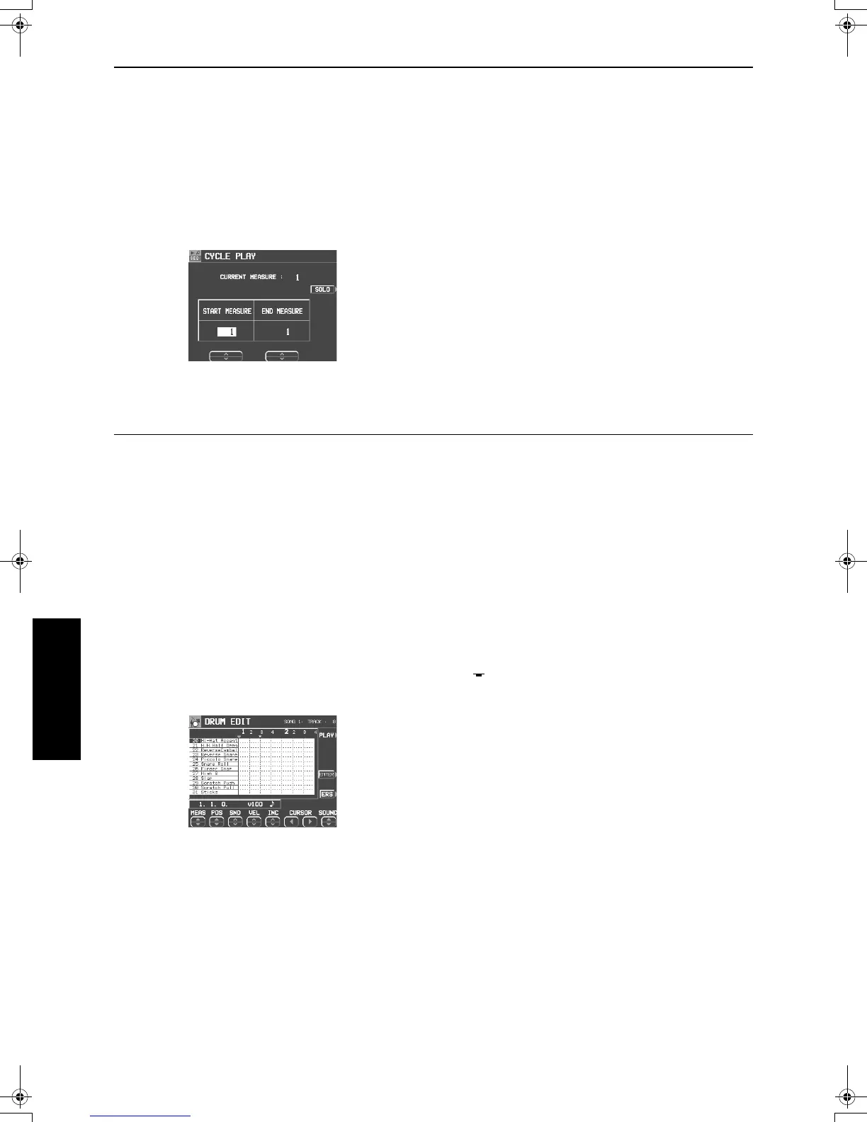The DRUMS part can be edited on a specialized display. This differs from the normal STEP RECORD edit