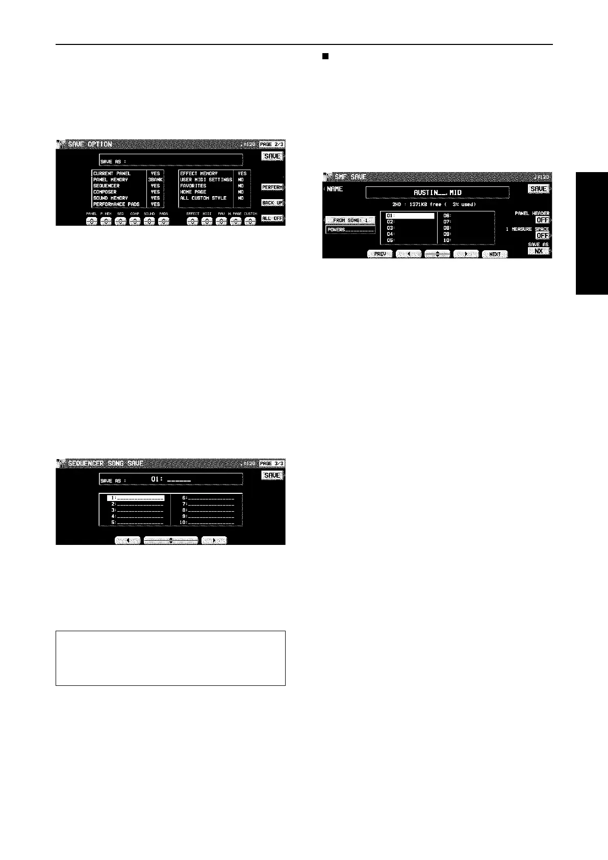 • For PANEL MEMORY, select from NO/1 BANK/ALL.