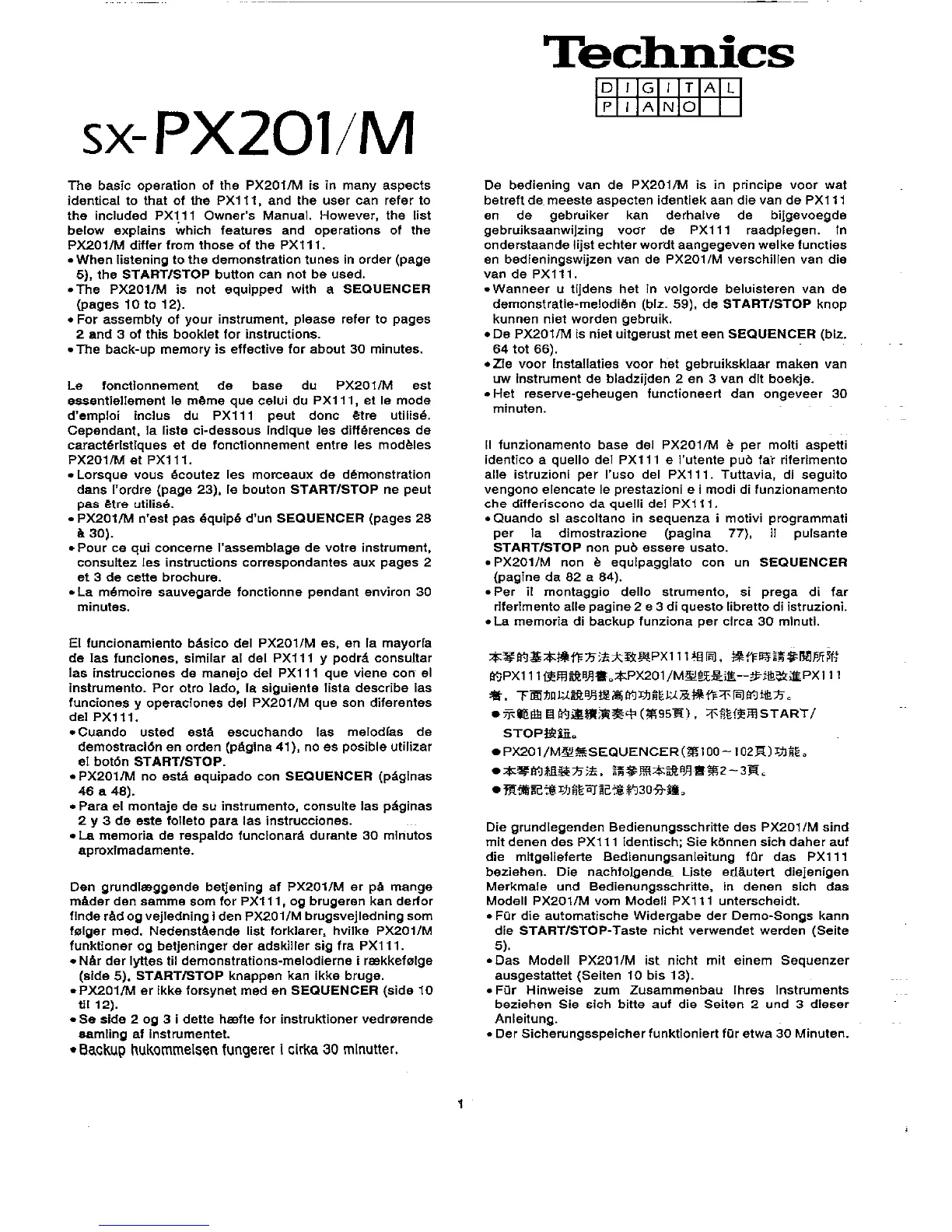 Other manuals for Technics SX-PX111