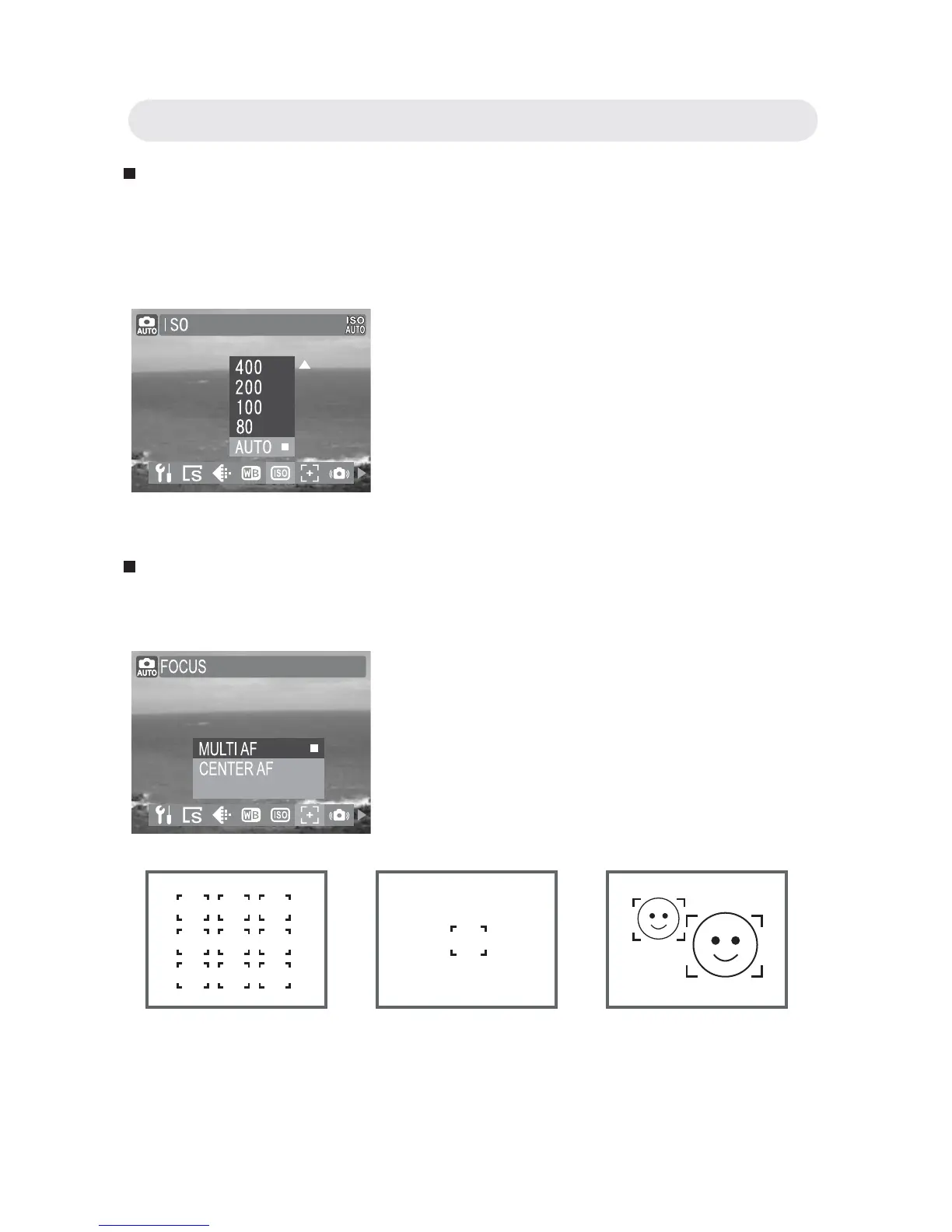 2 Select “MULTI AF” , “CENTER AF” or
