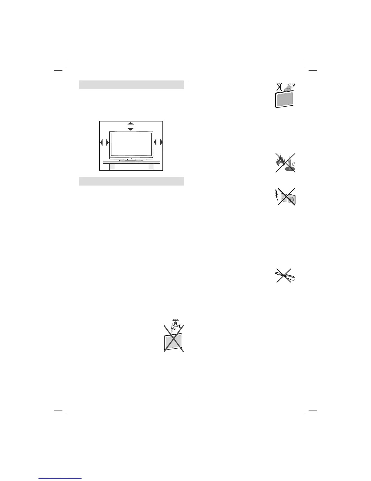Do not place the set, a piece of furniture, etc. on the