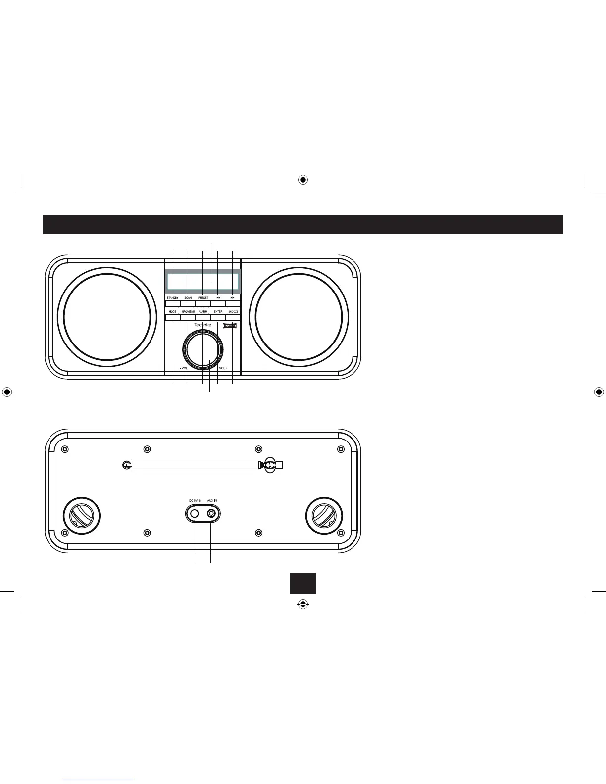 Technika DR1303 - Controls and Connections; Front View 1; Back View