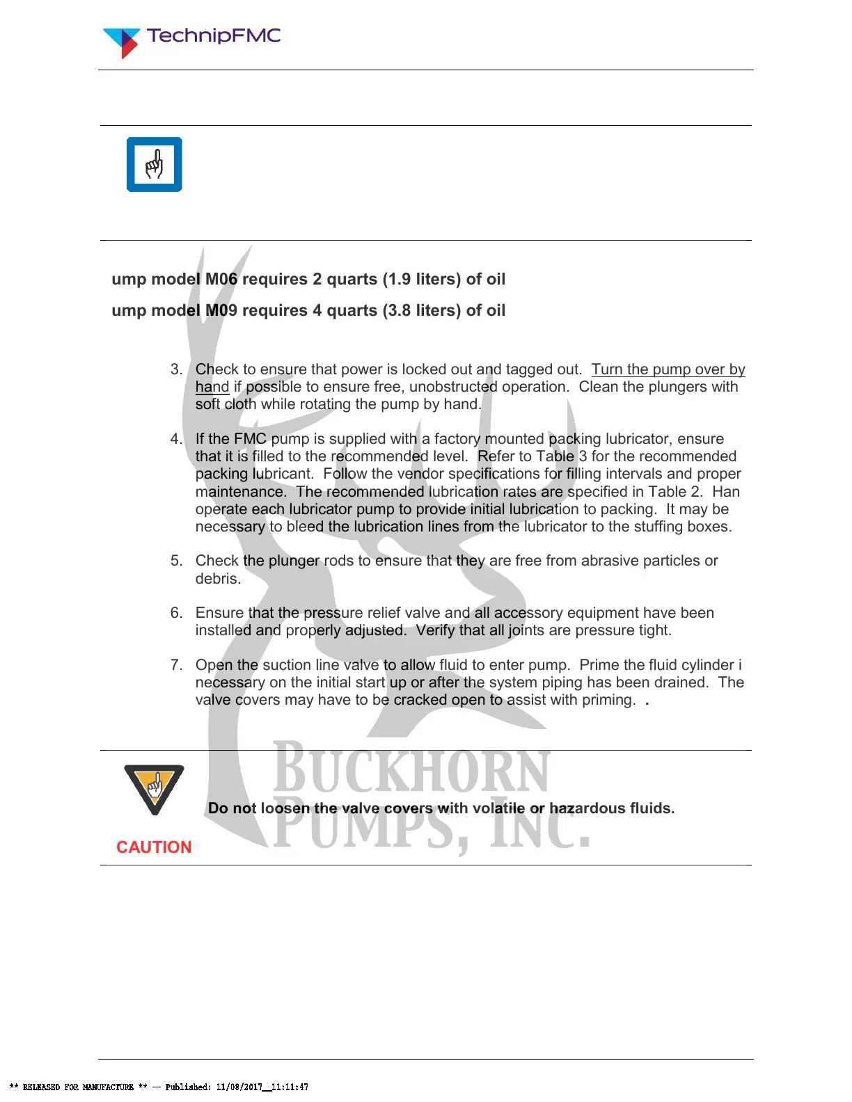 FMC pumps are shipped with no oil in the power frame and must be filled