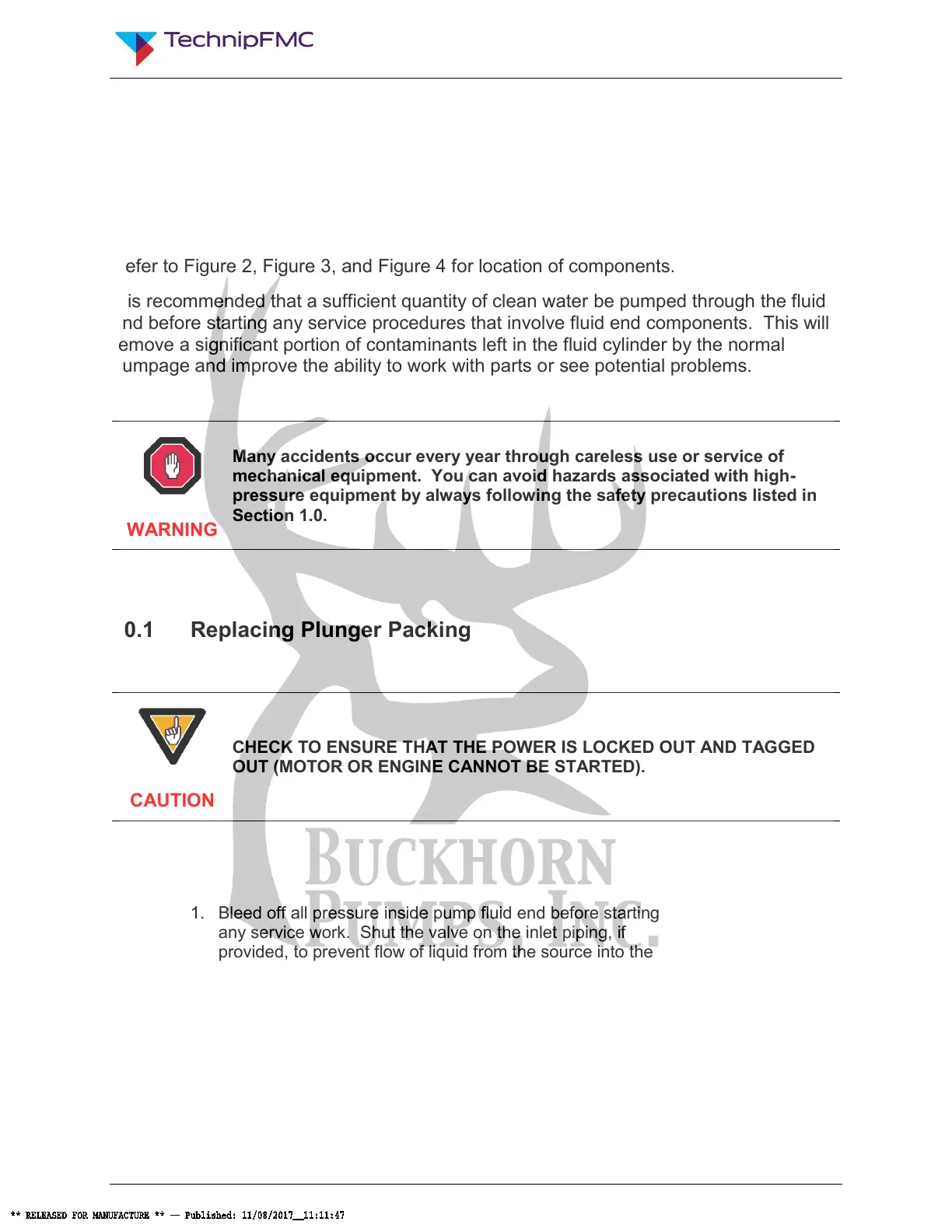 1. Bleed off all pressure inside pump fluid end before starting