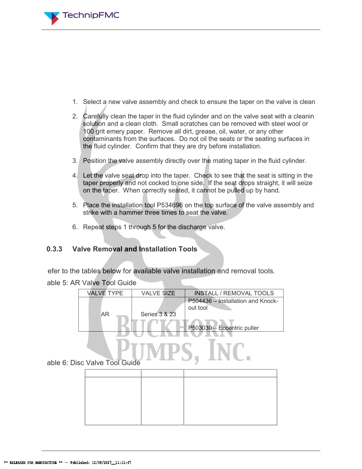 Table 5: AR Valve Tool Guide
