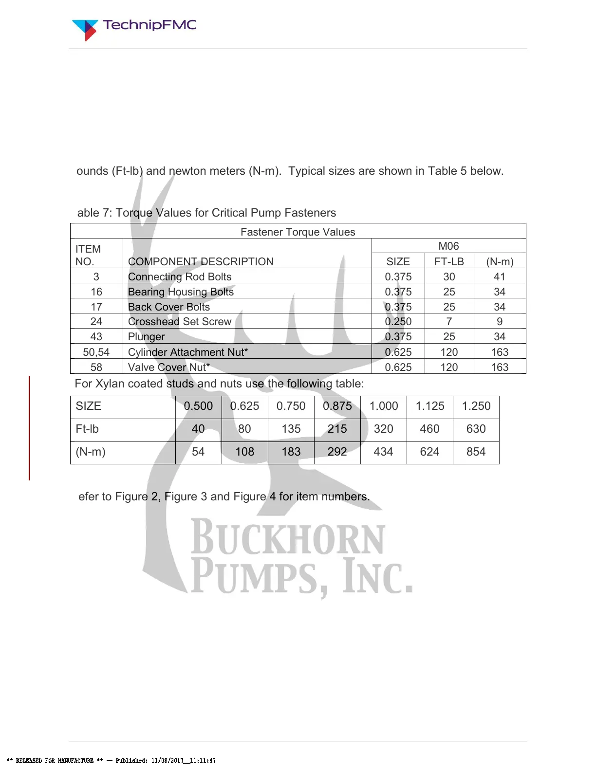 Table 7: Torque Values for Critical Pump Fasteners