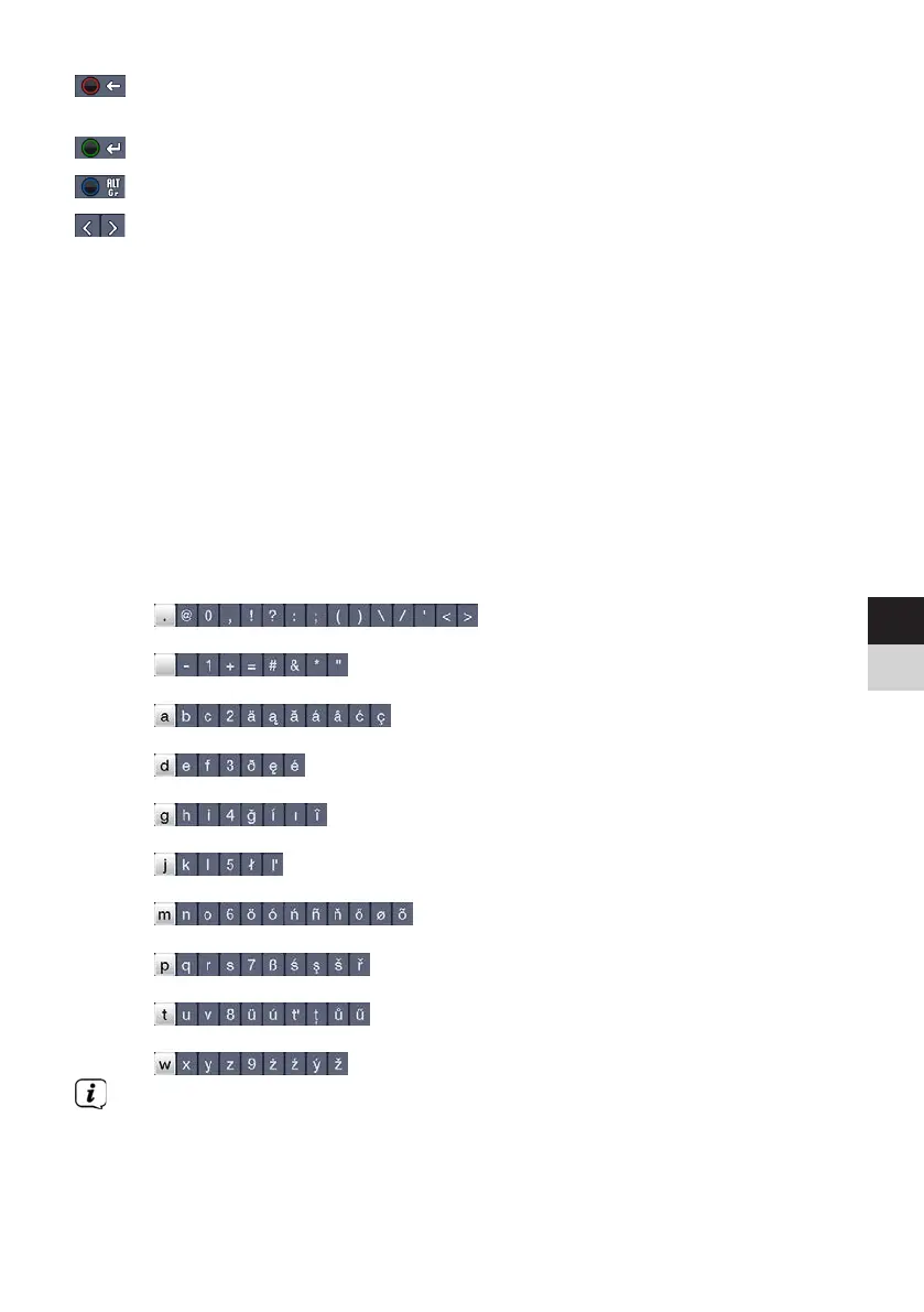 > Drücken Sie eine der Zierntasten 0 - 9, um die verschiedenen Buchstaben,