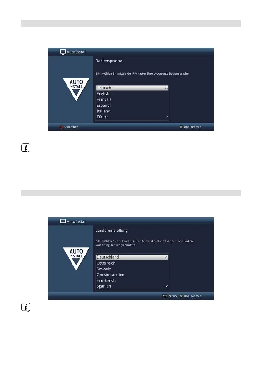 > Markieren Sie mit den Pfeiltasten die gewünschte Bediensprache.