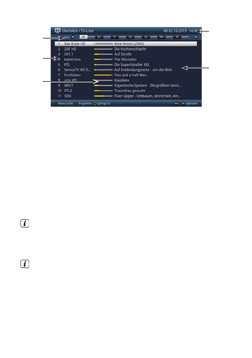 : Anzeigezeit > gibt den Zeitpunkt der darzustellenden Sendungen an.