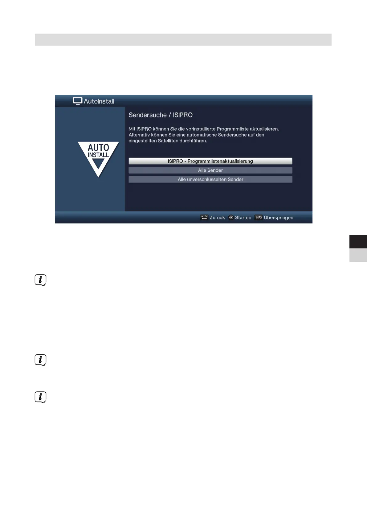 Sendersuchlauf durchführen, so markieren Sie mit den Pfeiltasten auf/ab