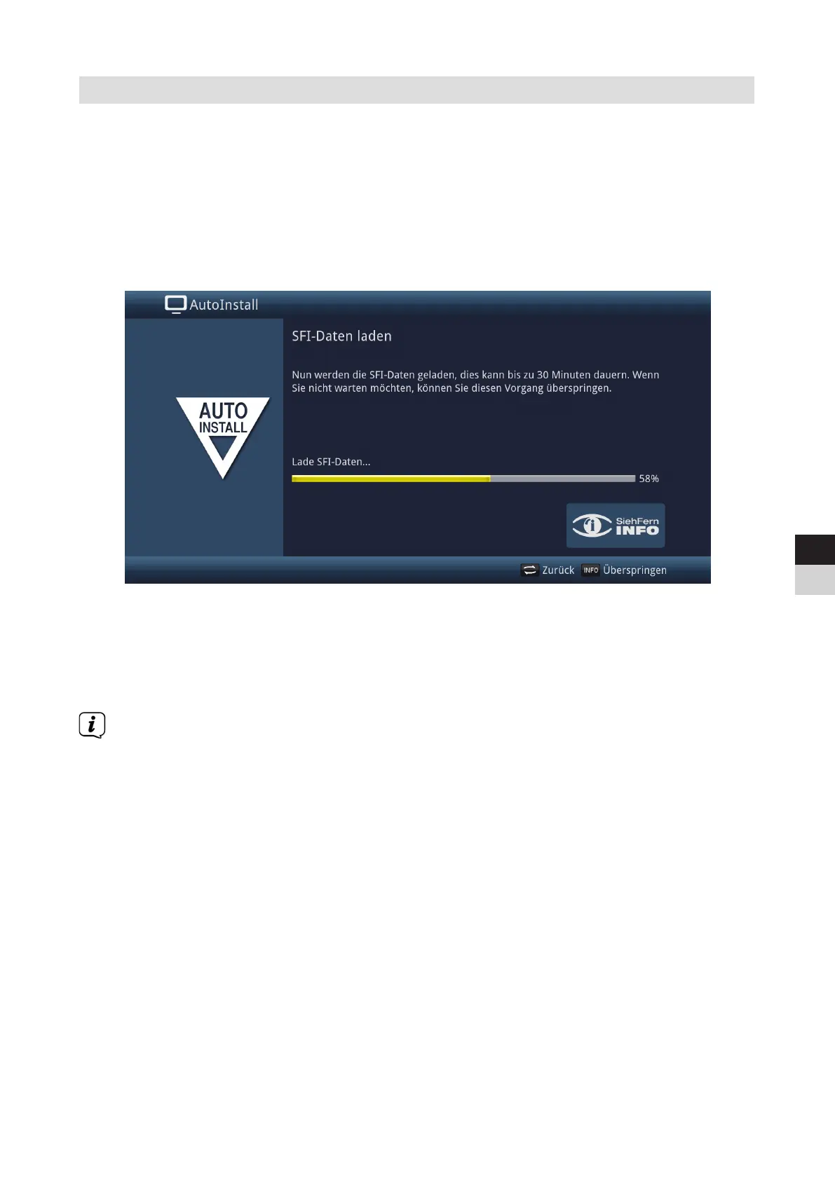 Sendersuche abgeschlossen ist, automatisch mit dem Laden der SFI-Daten. Dieser