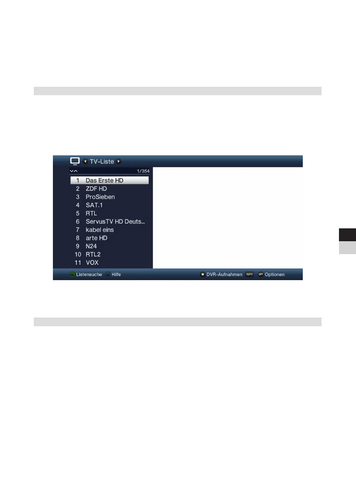 Es erscheint nun der Programmlisten-Navigator. Im TV-Betrieb erscheinen nur TV-