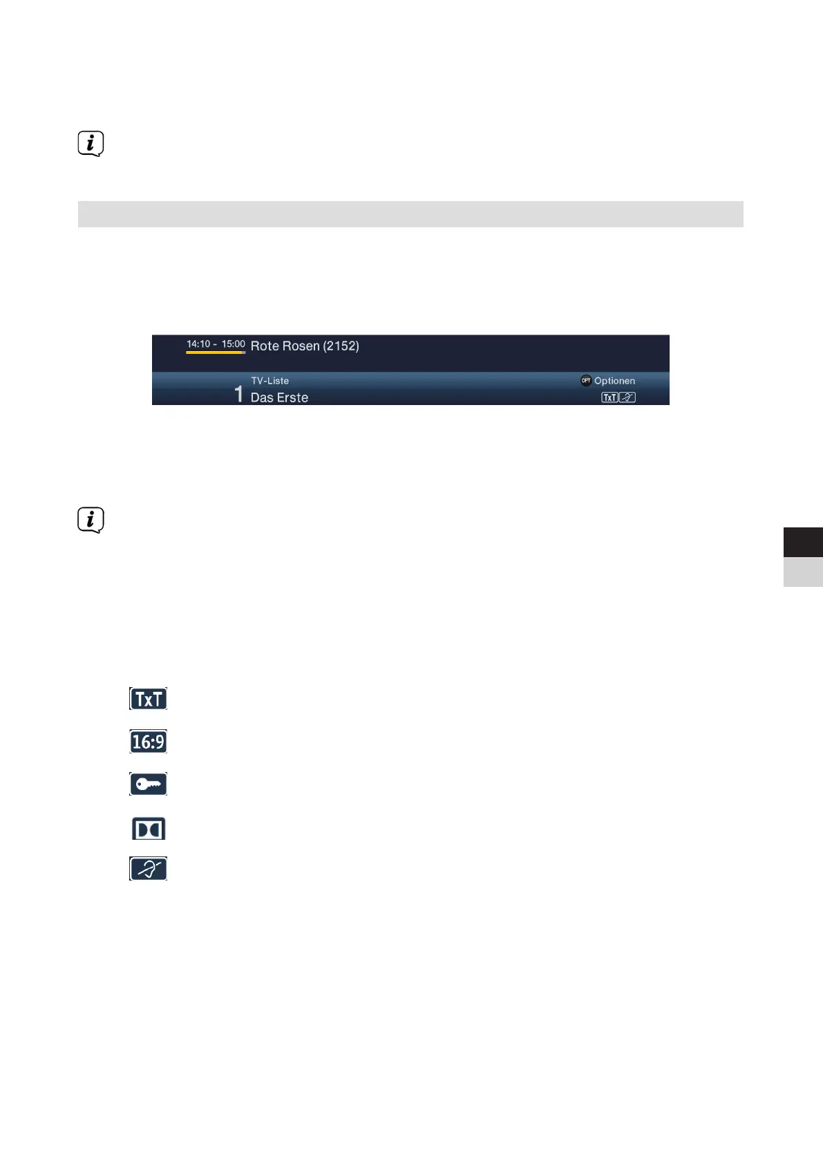 zudem manuell durch Drücken der Taste Info auf der Fernbedienung aufgerufen
