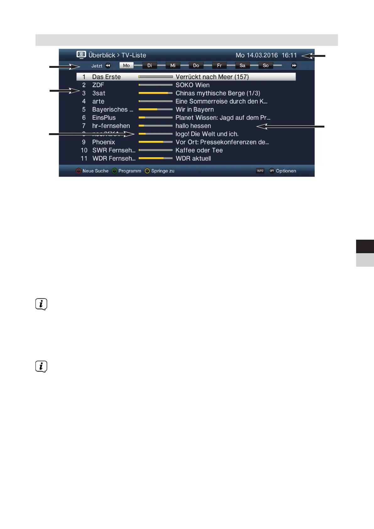 1. Anzeigezeit > gibt den Zeitpunkt der darzustellenden Sendungen an.