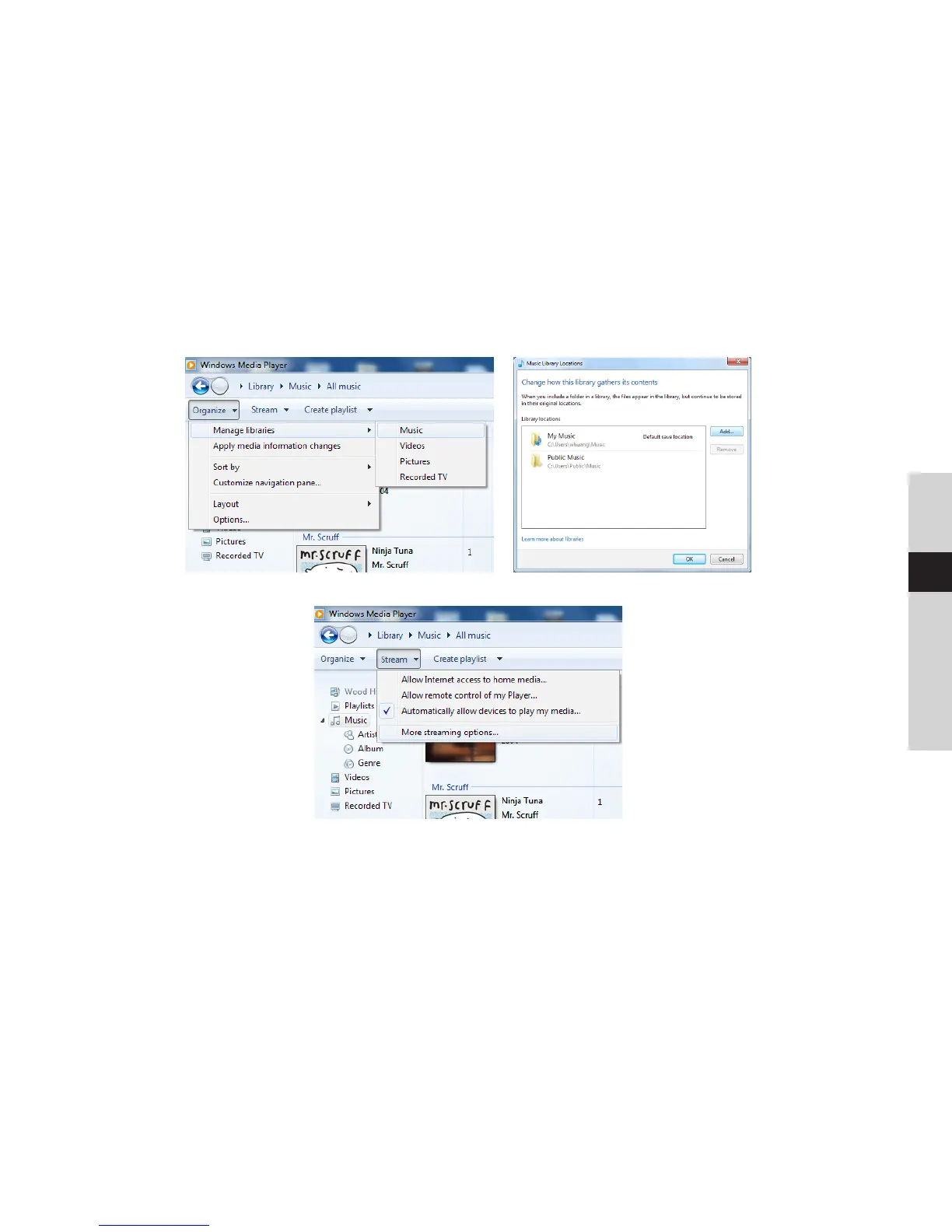 4. In WMP, abilitare la condivisione di file multimediali (Condividi > Altre opzioni flusso…).