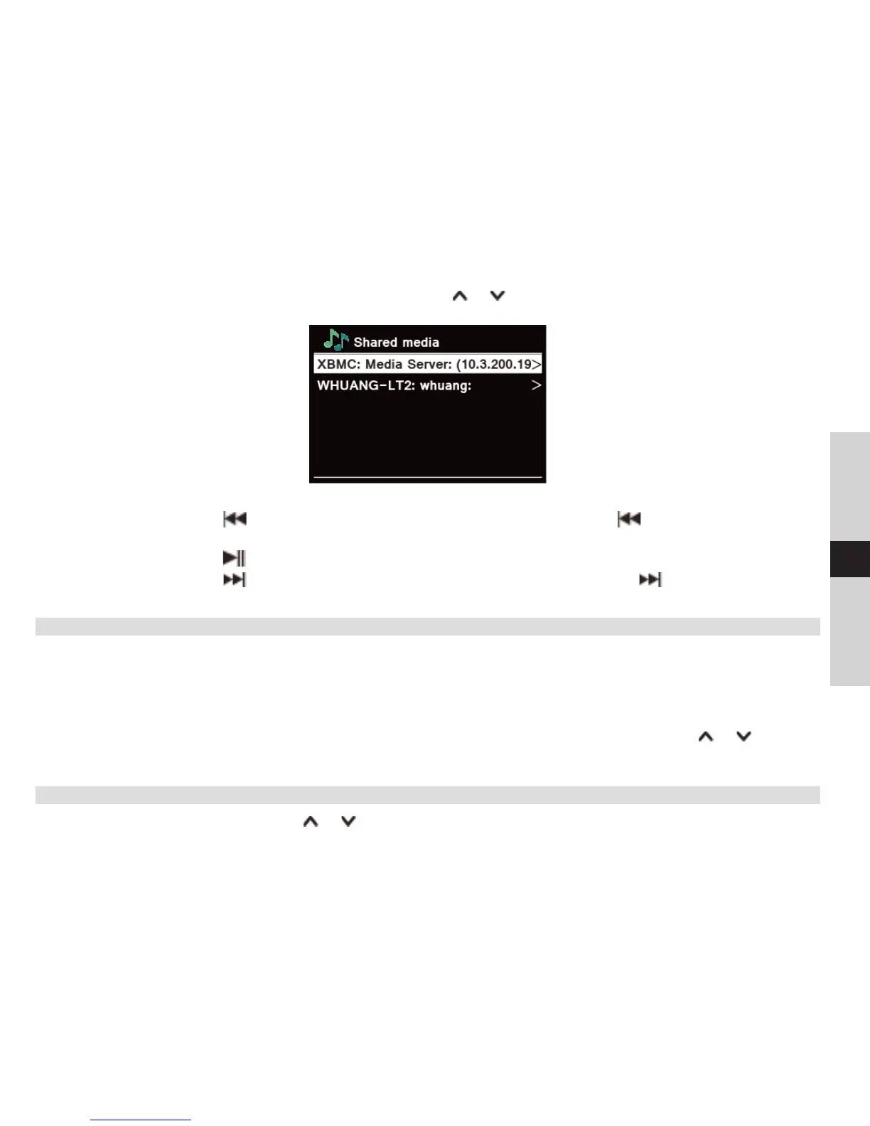 3. Beschikbare mediaservers worden vermeld. Druk op of om te bladeren door servers en druk op OK