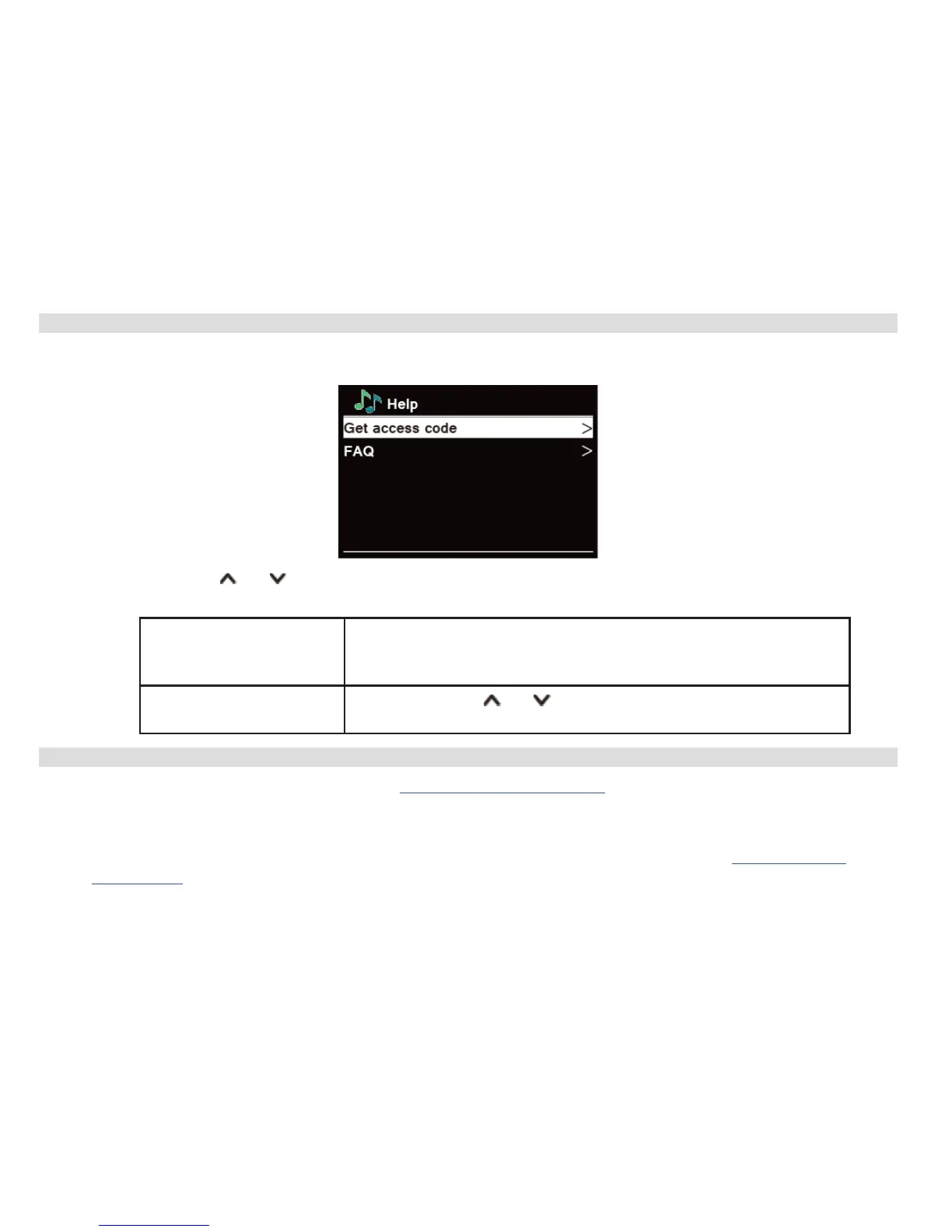 2. Naciśnij przycisk lub w celu uruchomienia opcji Uzyskaj kod dostępu lub FAQ i następnie naciśnij