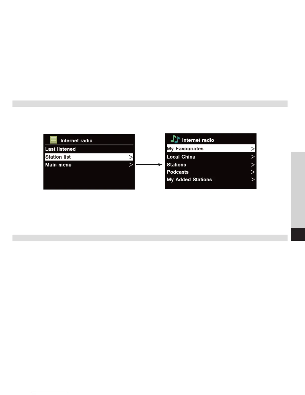 2. Zatiaľ čo je zvýraznená možnosť Station list (Zoznam staníc), stlačte tlačidlo OK na potvrdenie.