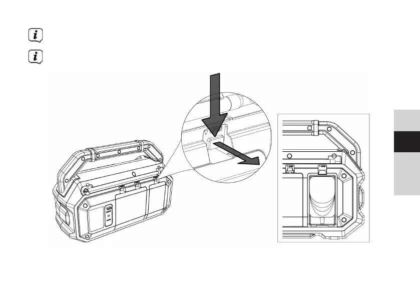 The power supply unit can be stowed in the designated slot (19) on the back: