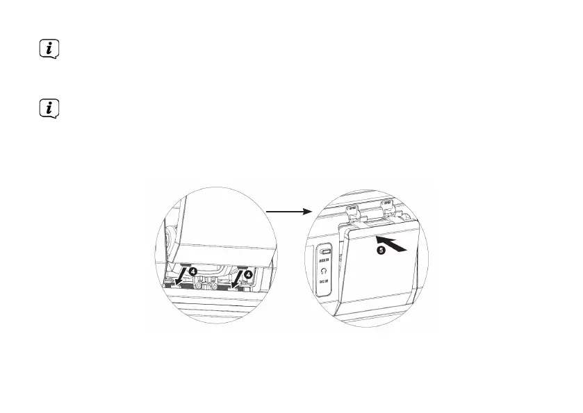 > Close the baery compartment cover again by first inserting it at the boom (4)
