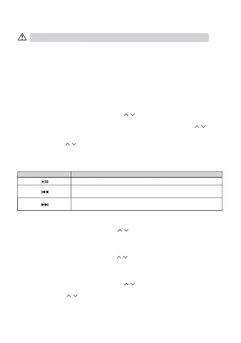 During Music Player mode, press the PRESET buttons to select Shuffle play and press the