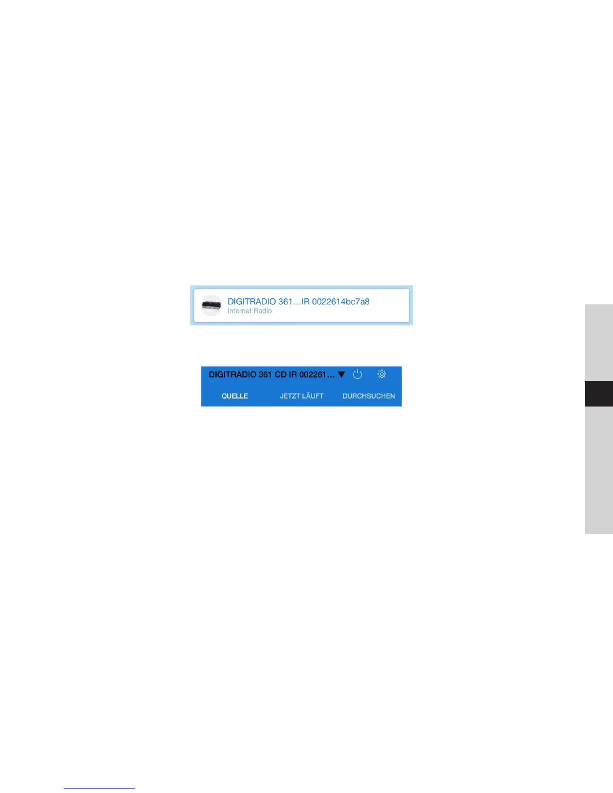> In het apparaatoverzicht van de app verschijnt de melding DIGITRADIO 360 CD IR of DIGITRADIO 361 CD