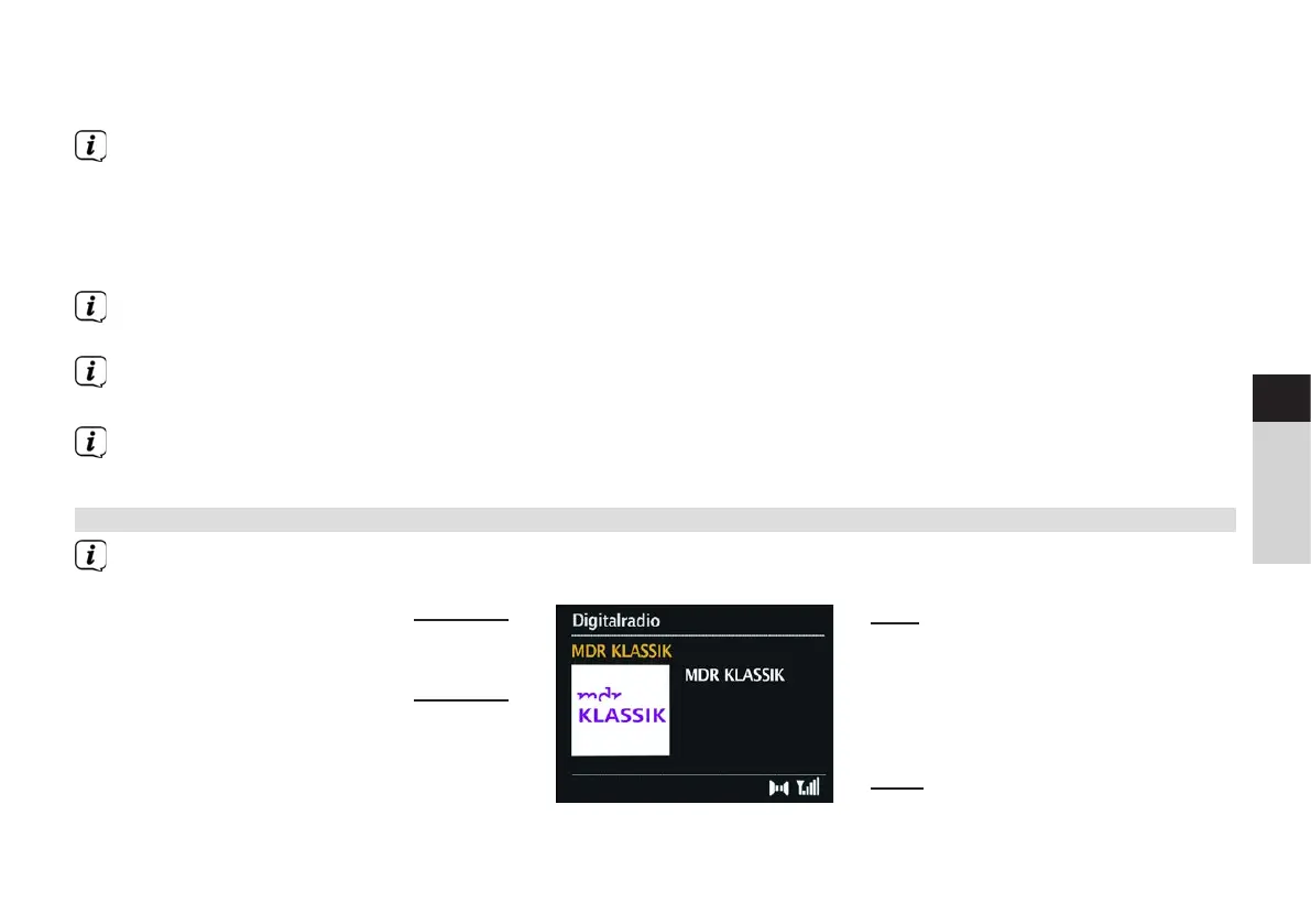 Einige Textdarstellungen (z. B. Menüeinträge, Senderinformationen) sind eventuell für die Anzeige im Display zu lang.
