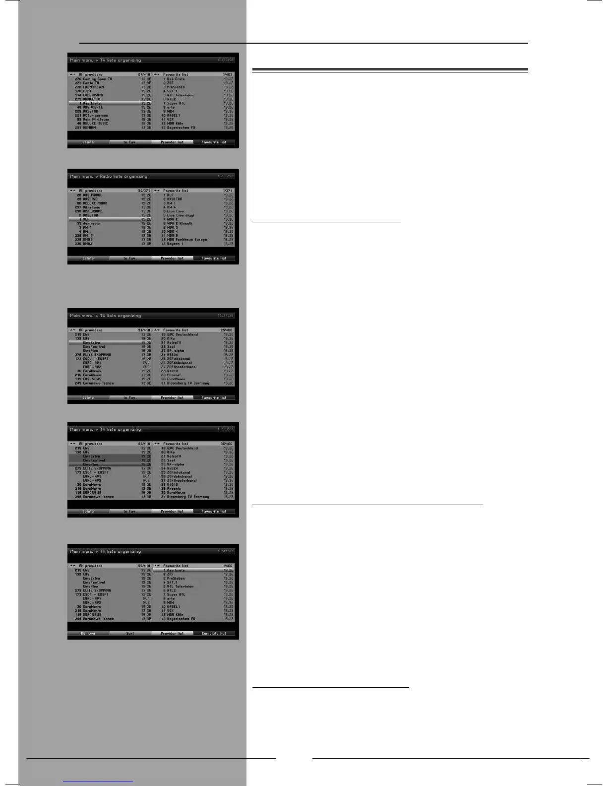 suosikkiluettelo ja tv-kanava/radioasemaluettelo. Suosikkiluettelo sisältää