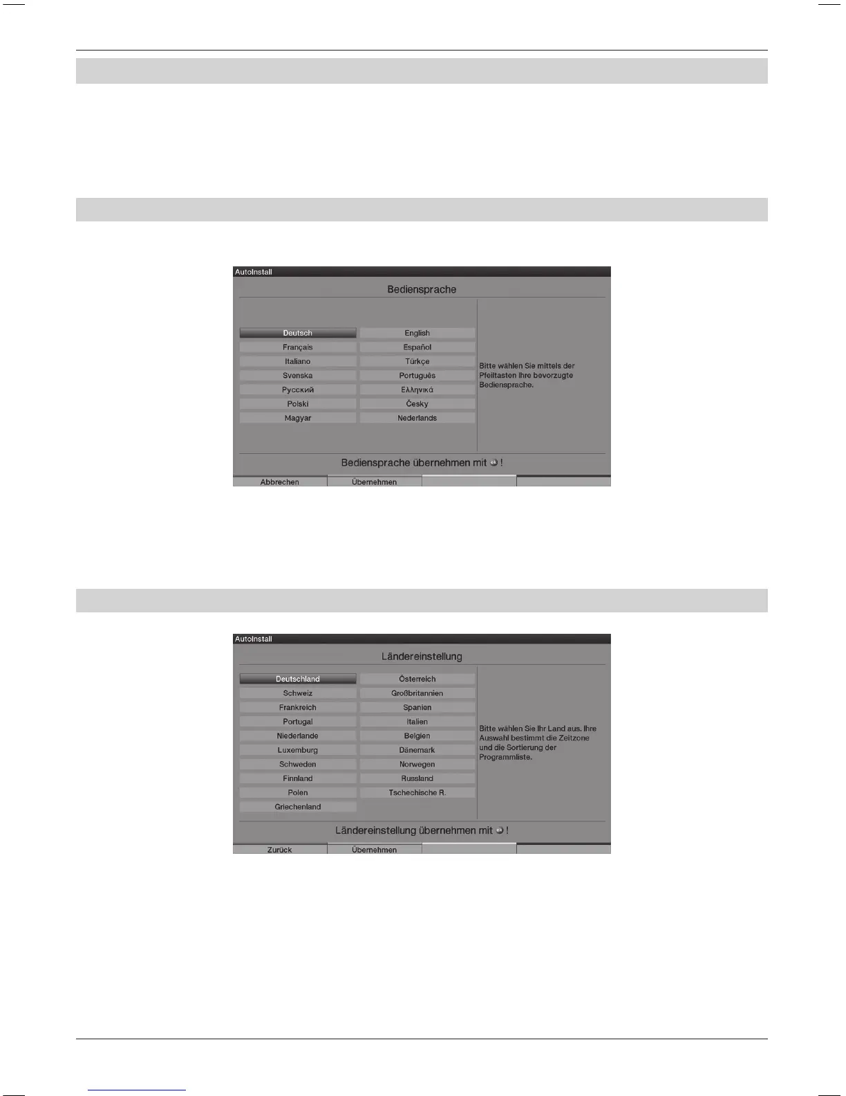 Installasjonsveiledningen AutoInstall begynner automatisk når enheten startes opp for første gang;