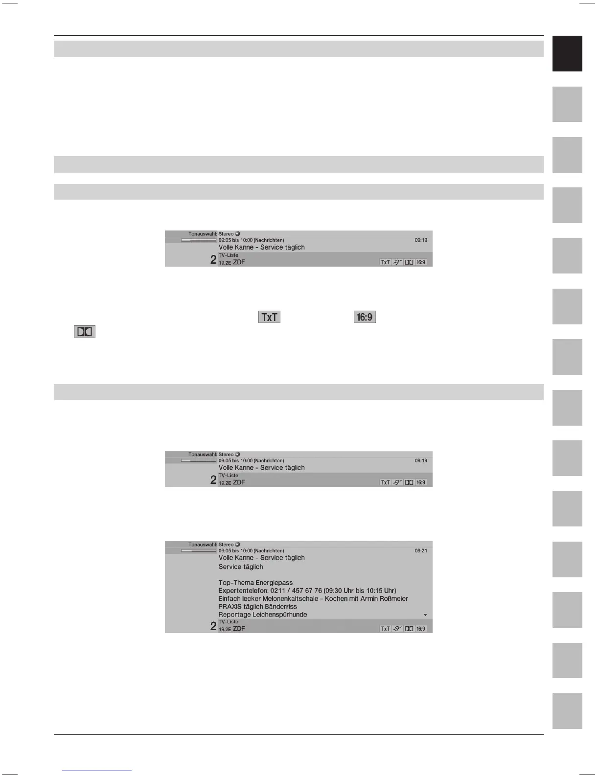 > The following programme is displayed, if broadcast, by pressing the Info key again.