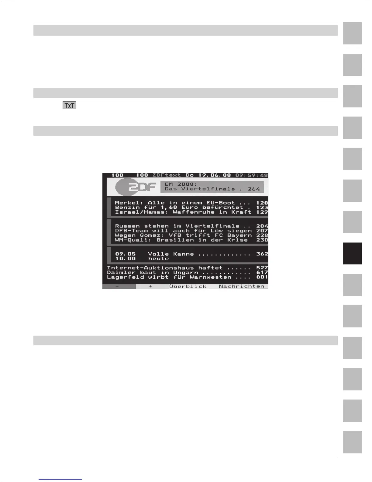 > Tryk på Videotekst-tasten endnu en gang for at vende tilbage til tv-funktion.