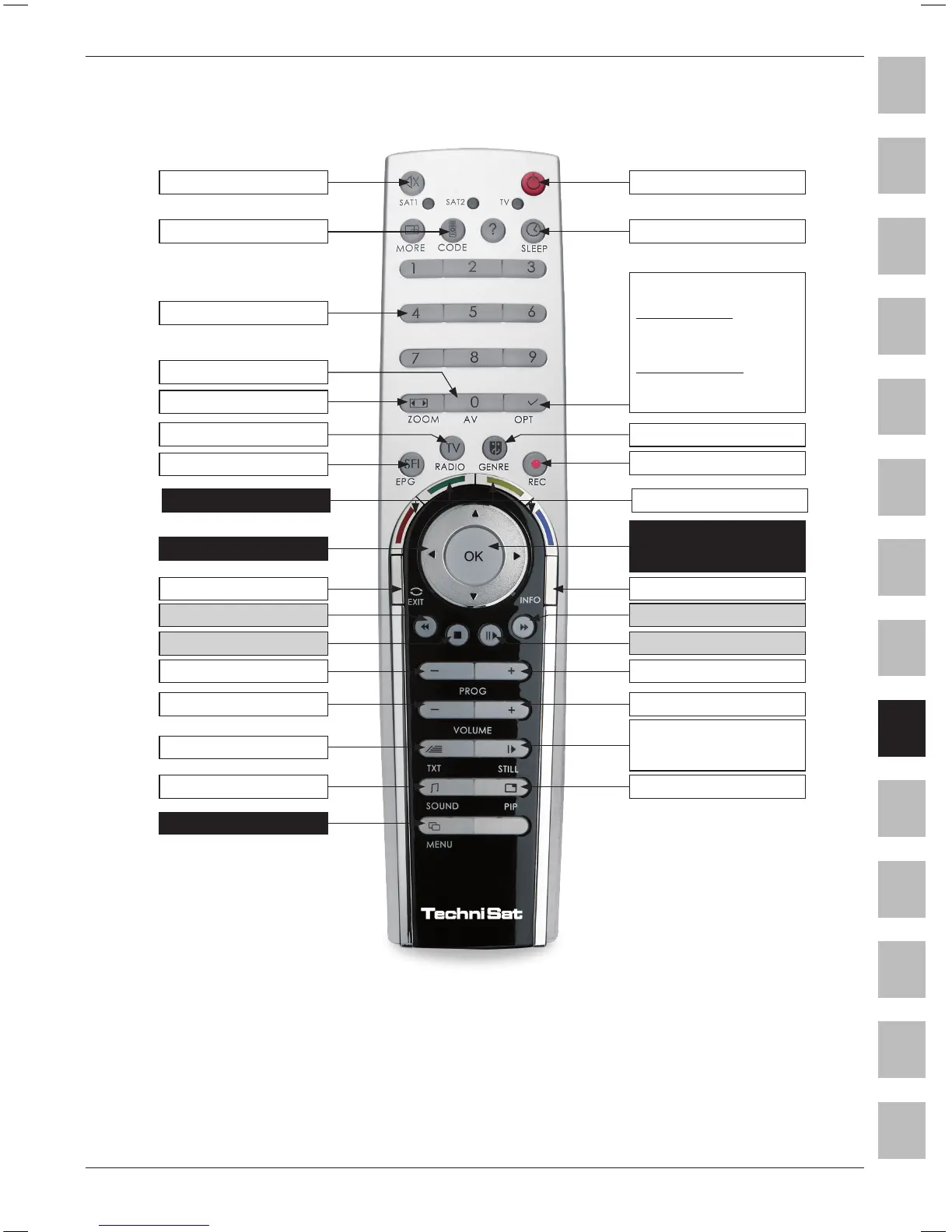 Denna fjärrkontroll kan styra två TechniSat mottagare och en TechniSat TV-apparat med samma kodering om man väljer det