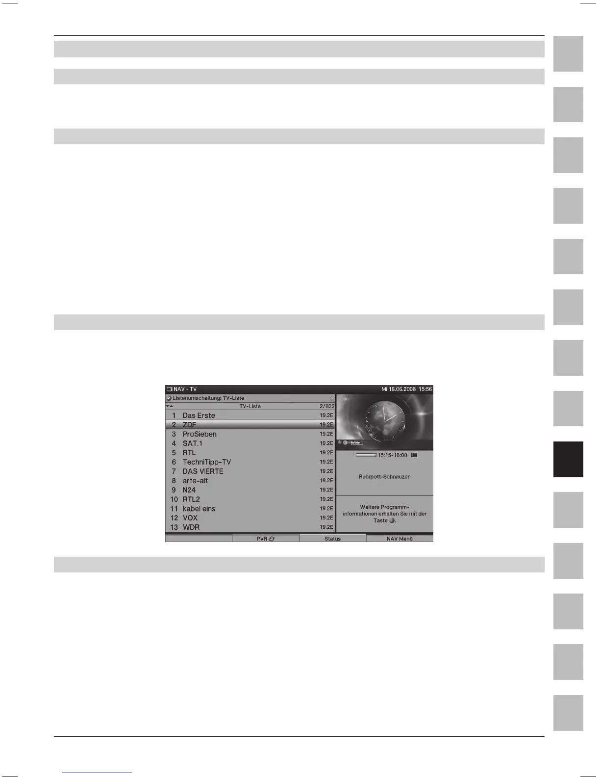 Programlistan visas. I TV-läge visas endast TV-program, och i radioläge endast radioprogram.