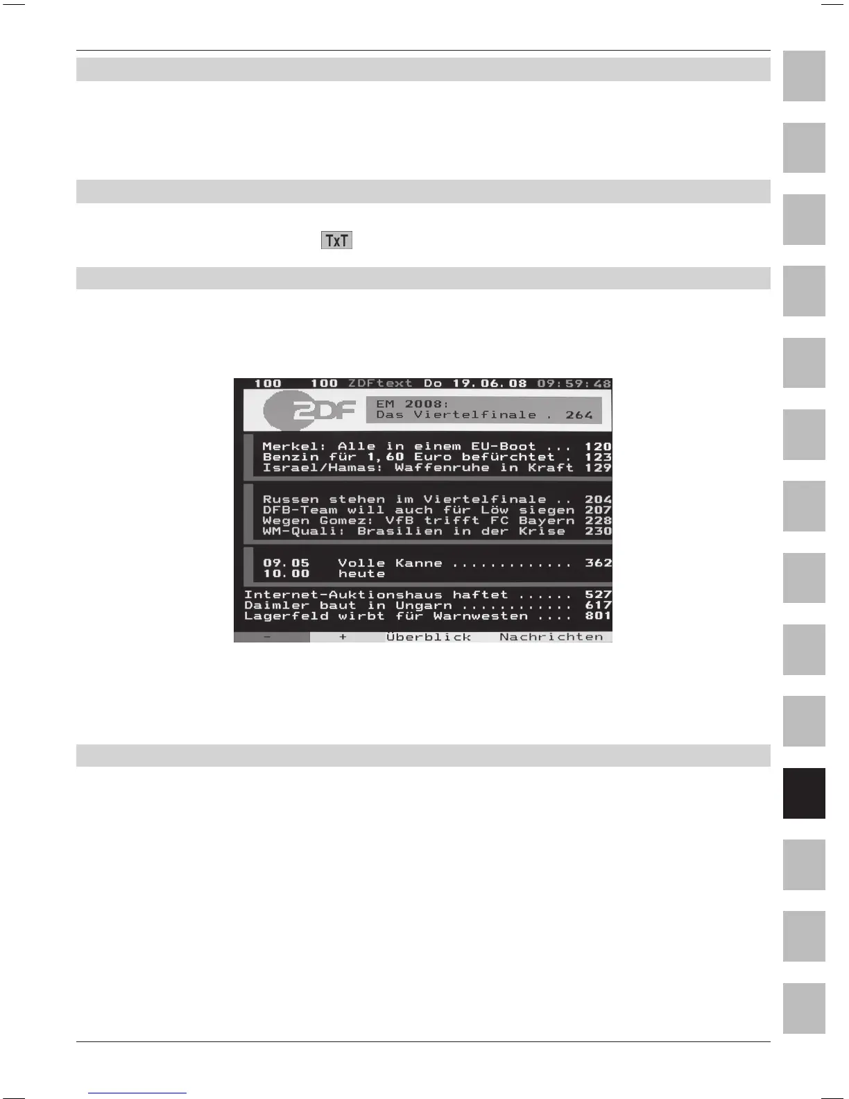 > Naciśnięcie klawisza Video text włącza telegazetę.