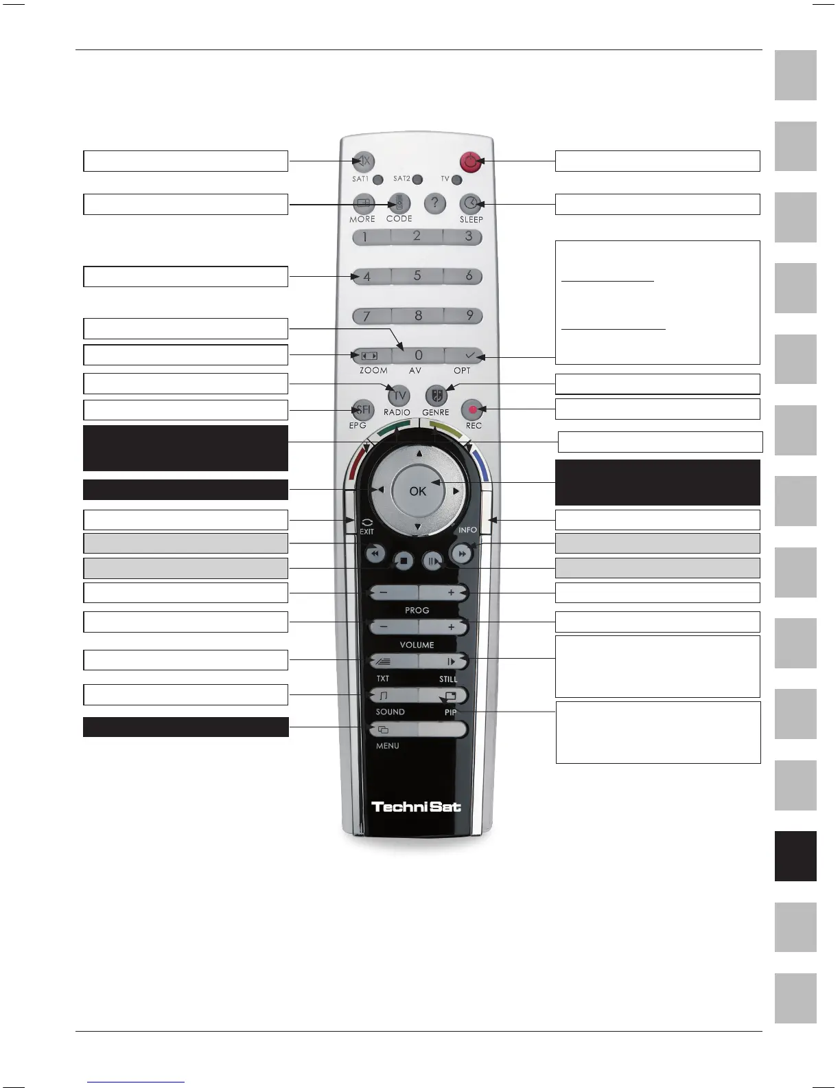 Tímto dálkovým ovladačem můžete ovládat dva přijímače TechniSat a televizor TechniSat se stejným kódováním