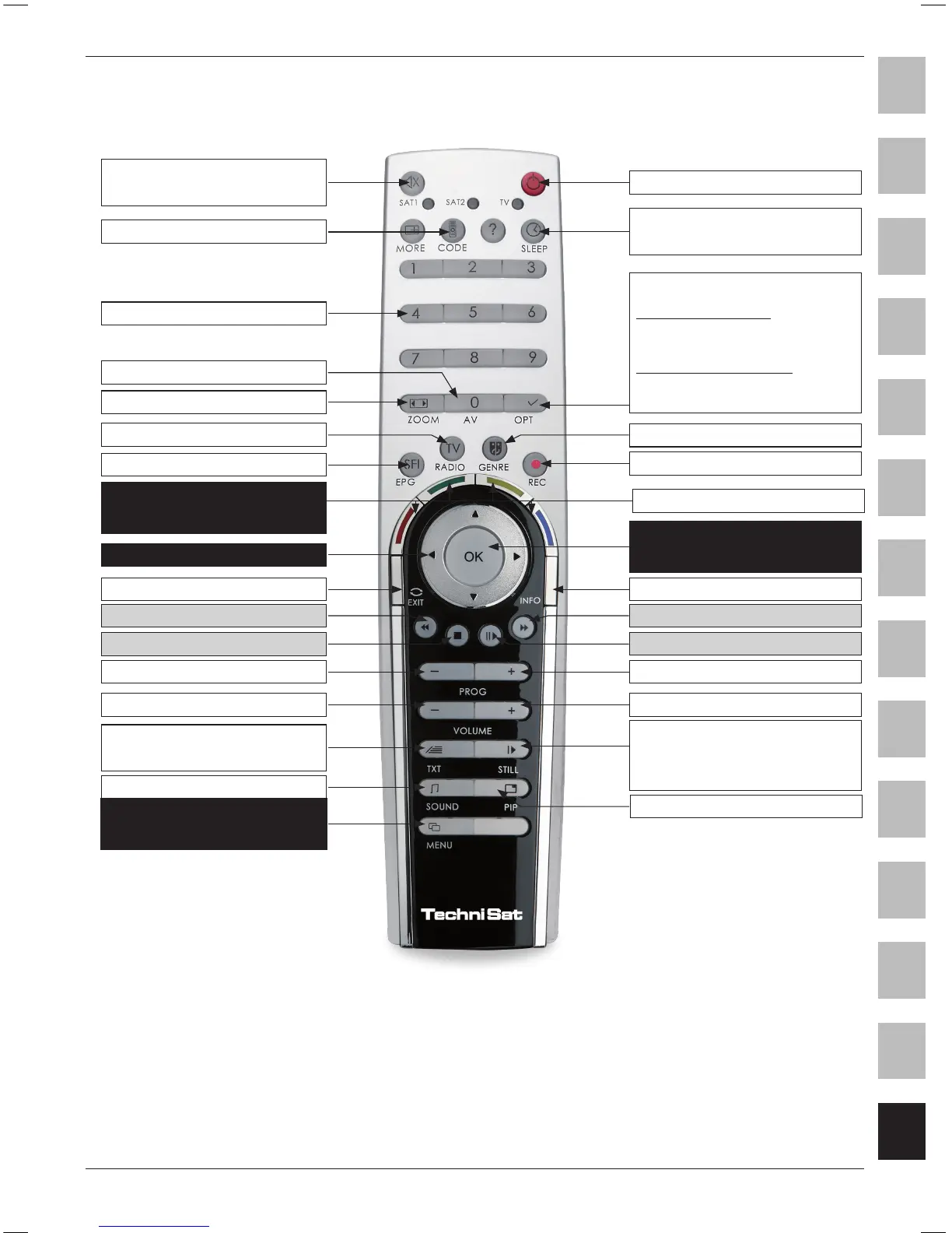 Данный пульт ДУ может использоваться для управления двумя приемниками TechniSat и телевизором TechniSat с одинаковой
