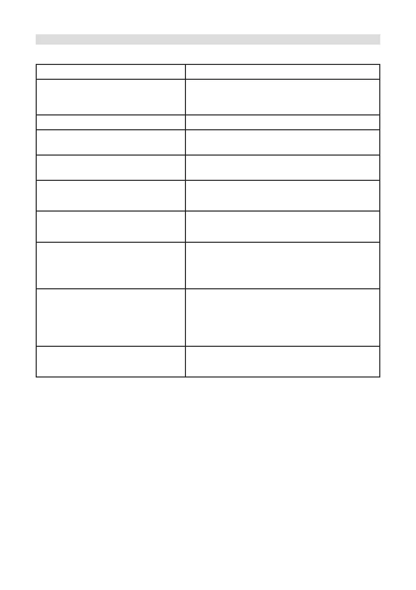 If the device does not operate as intended, check the table below for information.